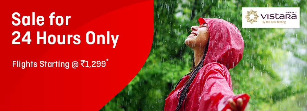 Plan your perfect getaway this monsoon with Vistara Airlines irresistible flights deals. Get it before its too late!