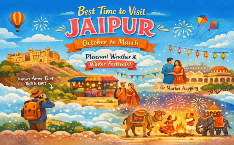 October to March is hands down the best time to visit Jaipur with pleasant weather, perfect for Amer Fort exploration (built in 1592 by Raja Man Singh I) and market hopping without melting.