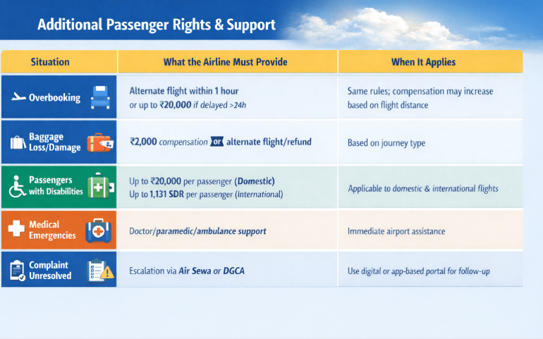 Overbooked? Airlines must rebook within an hour or compensate up to ₹20,000 if delays exceed a day. Lost baggage caps sit at ₹20,000 domestically and 1,131 SDR internationally. Cargo follows its own math. These details matter when flight delay compensation conversations turn serious.