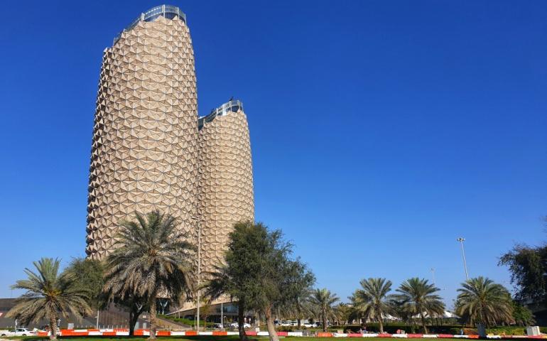 What is the interesting building in Abu Dhabi?