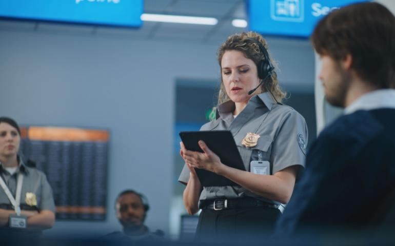 TSA Officer talking to a passenger